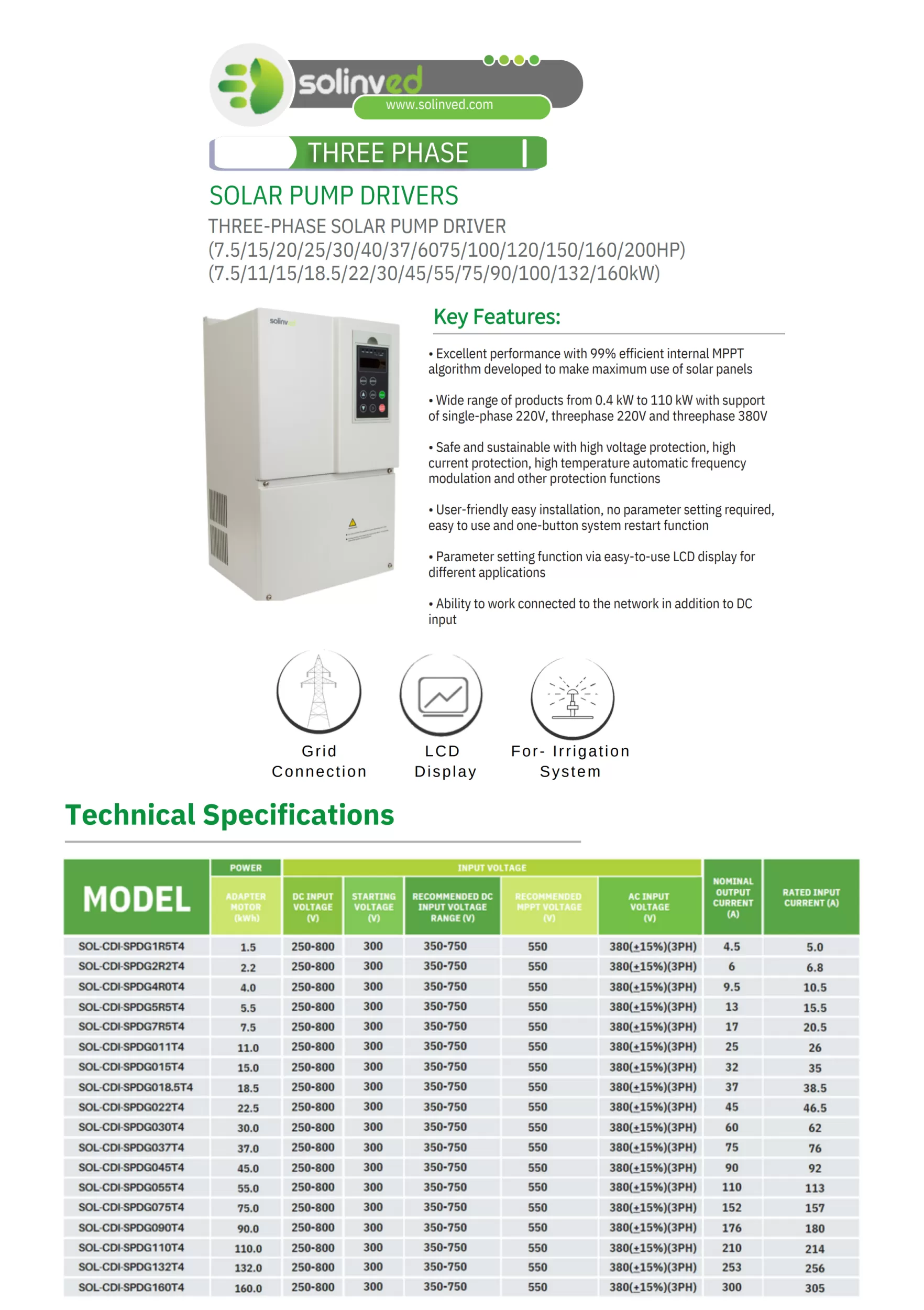 Solinved 40 HP 30 kW Trifaze Solar Pompa Sürücü