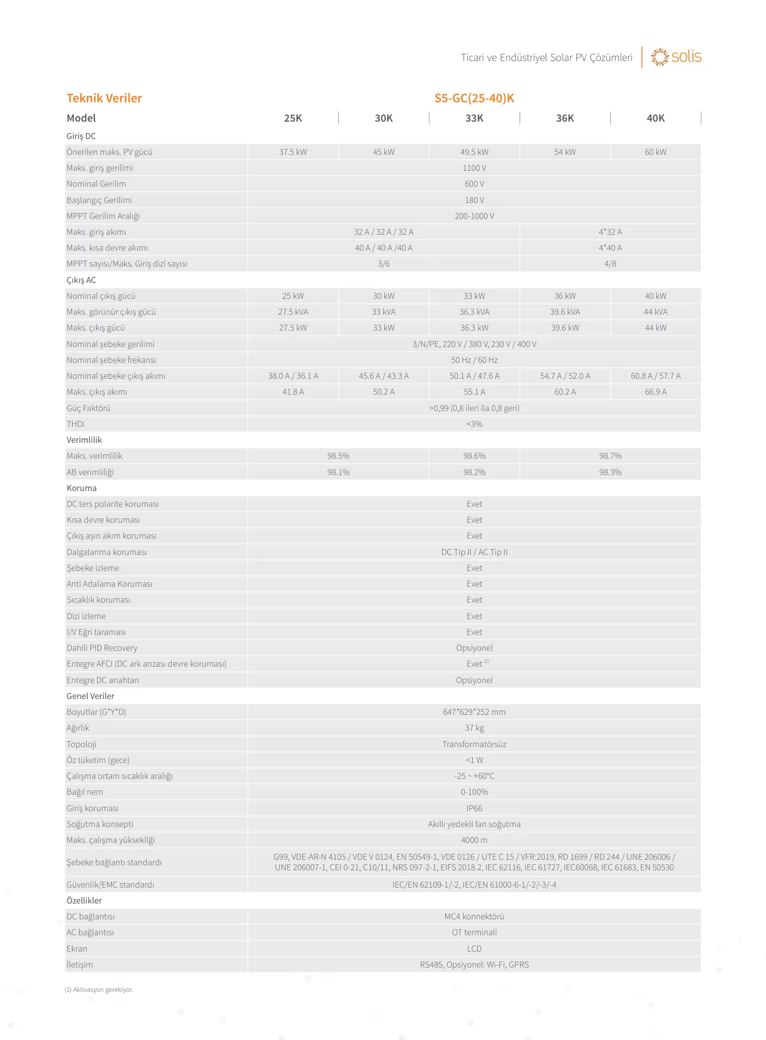 Solis Monofaze Inverterler