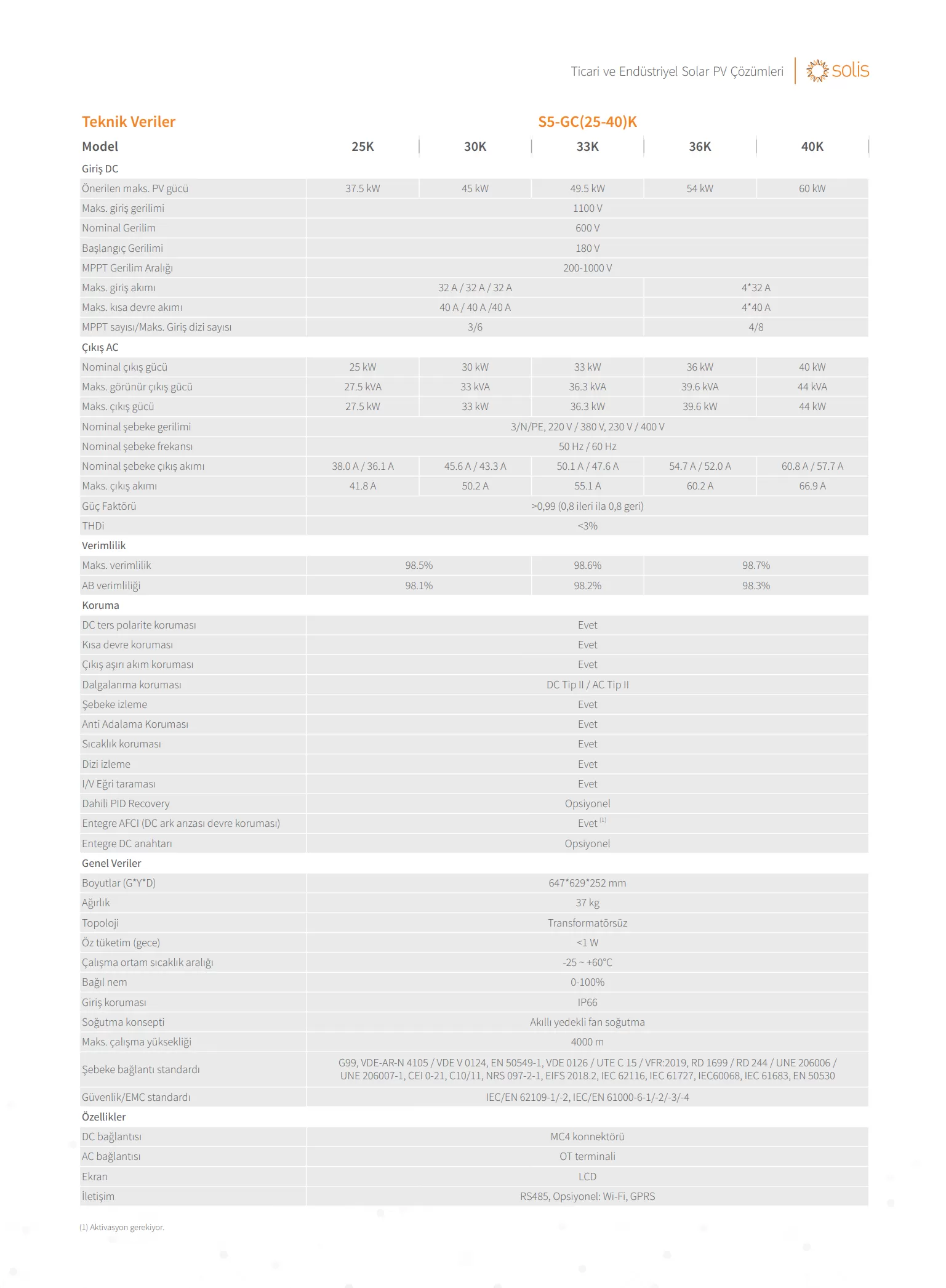 Solis Monofaze Inverterler